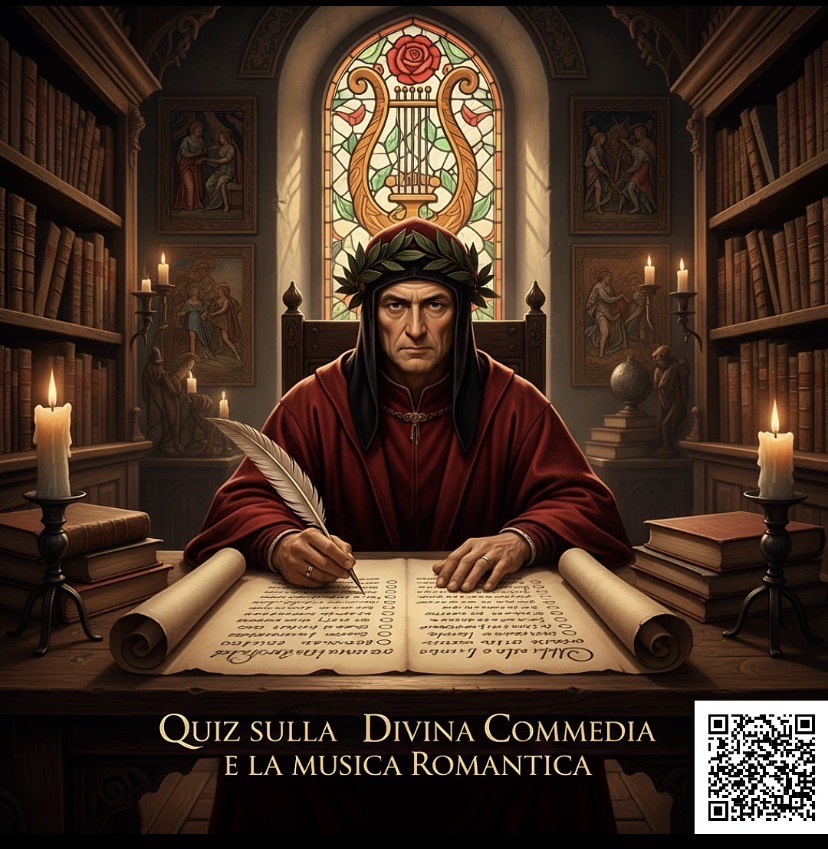 Il progetto consiste in un questionario a scelta multipla sul rapporto tra la Divina Commedia e il Romanticismo, con riferimenti sia letterari sia musicali.