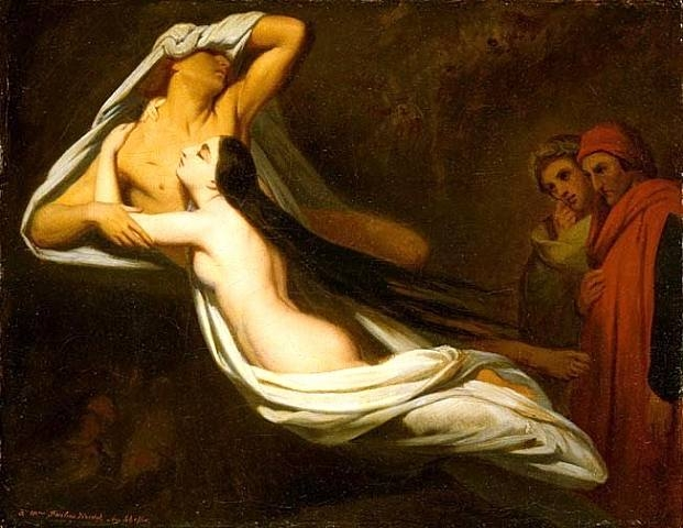 La vicenda di Paolo e Francesca, nella Divina Commedia, è costruita su un equilibrio ambiguo. Dante colloca i due amanti tra i dannati, trascinati eternamente dalla bufera infernale, simbolo della passione che li ha travolti in vita. Tuttavia, il poeta affida a Francesca una lingua dolce, lirica, colma di nostalgia e memoria. L’amore è presentato come forza inevitabile, quasi naturale, che si impone sull’individuo. In questo corto circuito tra giudizio teologico e compassione umana si inserisce la ricezione romantica del canto: ciò che per Dante resta colpa, per i romantici diventa tragedia.