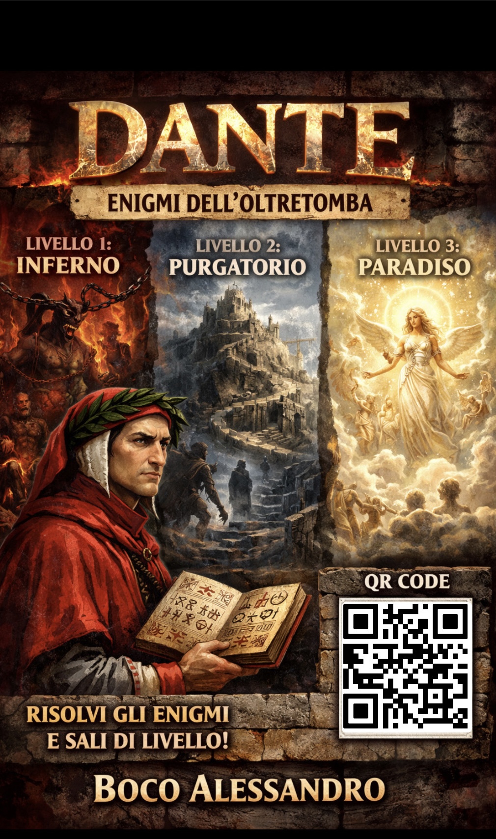 Home Ambasciatori 2026 Dante – Enigmi dell’oltretomba Ambasciatori 2026La Divina Commedia Dante – Enigmi dell’oltretomba By admin - Marzo 30, 2026 4 0 FacebookTwitterPinterestWhatsApp Screenshot Scansione il QR Code o vai al link diretto https://bit.ly/4lZ8lTf Autore: Alessandro Boco – IIS Giordano Bruno – Perugia