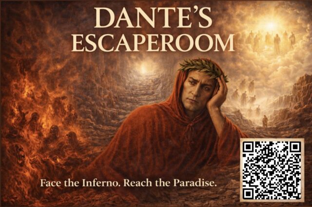 Questa escape room nasce come un viaggio simbolico ispirato alla Divina Commedia di Dante Alighieri. Attraverso enigmi, il giocatore è chiamato a ripercorrere le tre cantiche Inferno, Purgatorio e Paradiso, vivendo in prima persona il cammino di smarrimento, purificazione e salvezza. Ogni tappa rappresenta non solo un luogo, ma una fase del percorso umano e morale di Dante, trasformando lo studio dell’opera in un’esperienza interattiva e coinvolgente.